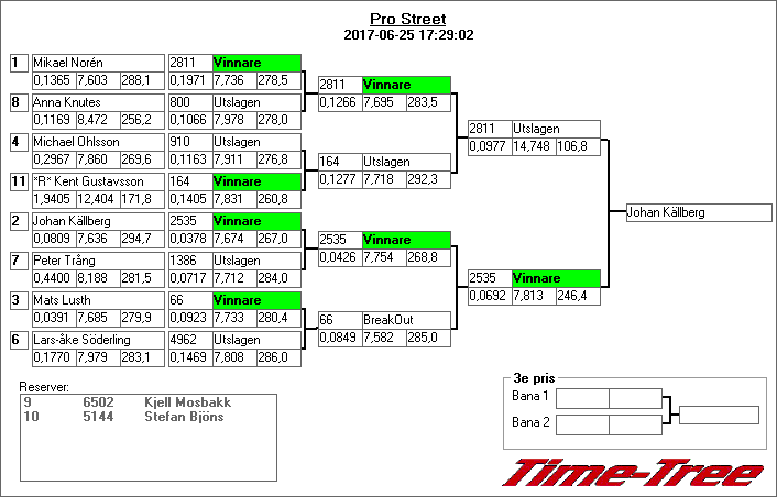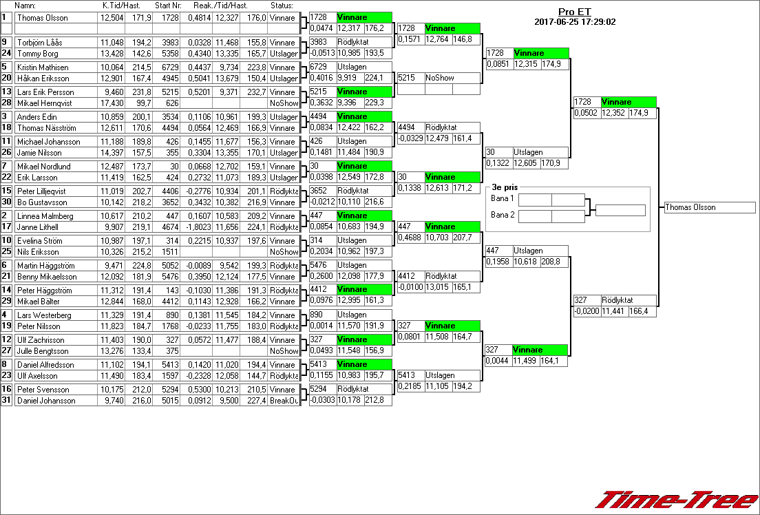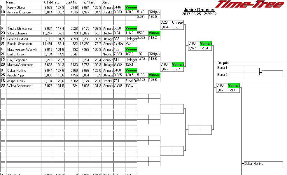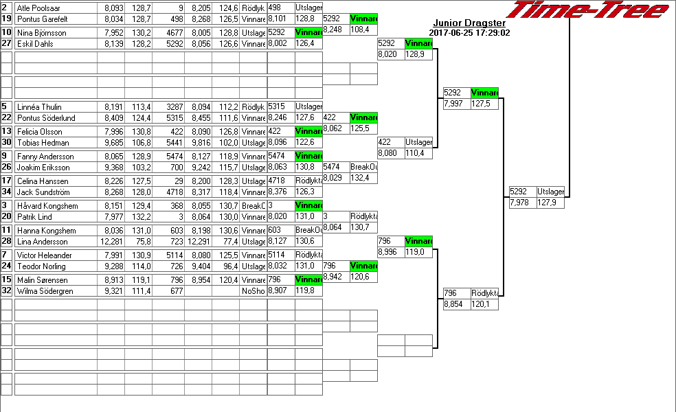 Kvalresultat för Junior Dragster