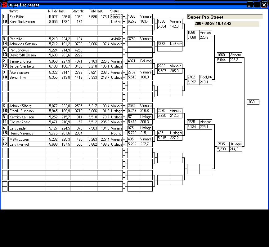 [2007-08-25] 11:01 Nu rullar vi på, Bracket första svängen klar...håll ögonen öppna vi uppdaterar löpande...