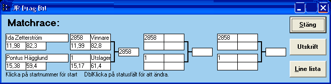 [2006-09-16] 16:28/17:28 lokal Vi är framme i finaler i samtliga klasser, tävlingen har gått bra utan några saneringar.