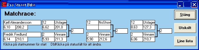 [2006-09-16] 11:05/12:05 lokal Hej Här har vi just startat upp tävlingen. Kvallistor så här långt ligger uppe. Just nu har vi ett litet avbrott efter en liten incident med en Camaro som halkade lite lätt av banan. Ingen fara med vare sig förare eller bil :)