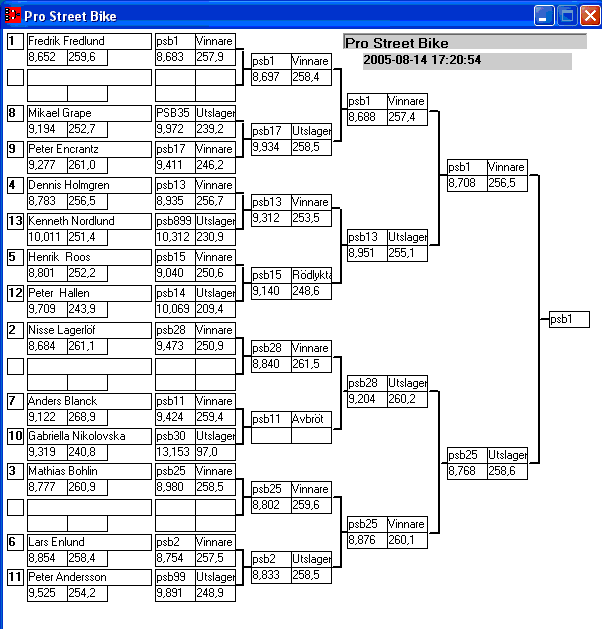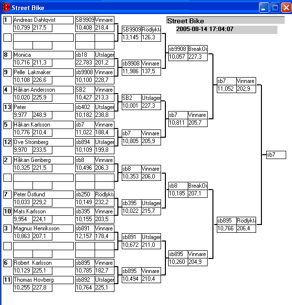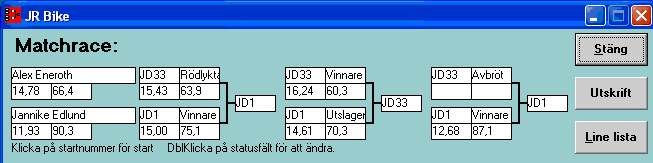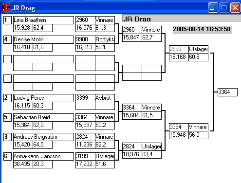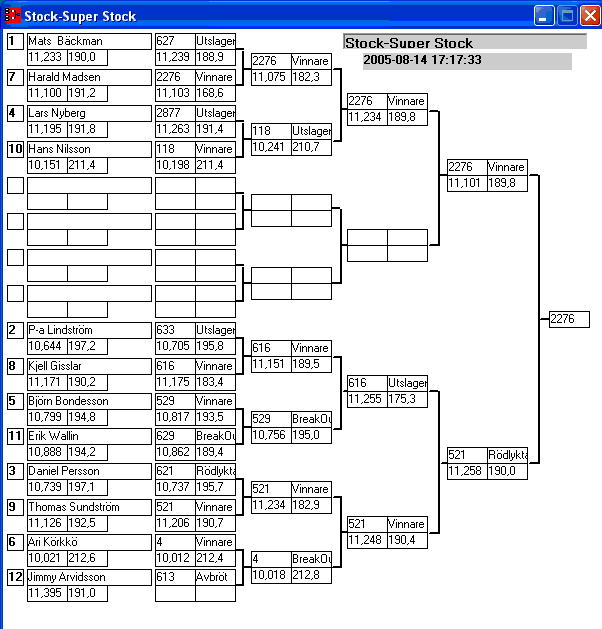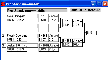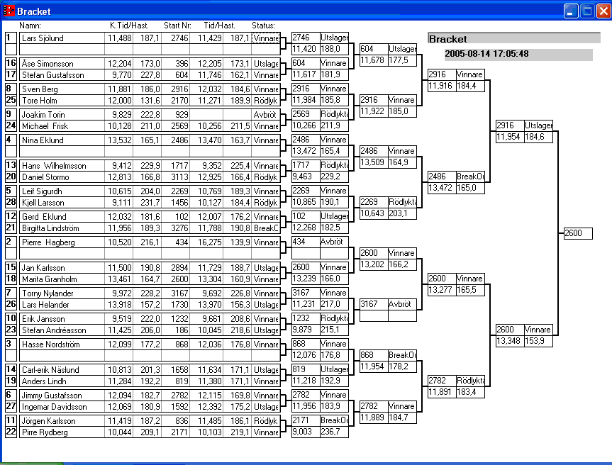 Pos TvlNR Namn Reaktion 60-fot Hast201 Tid201 Hastighet Sluttid Diff