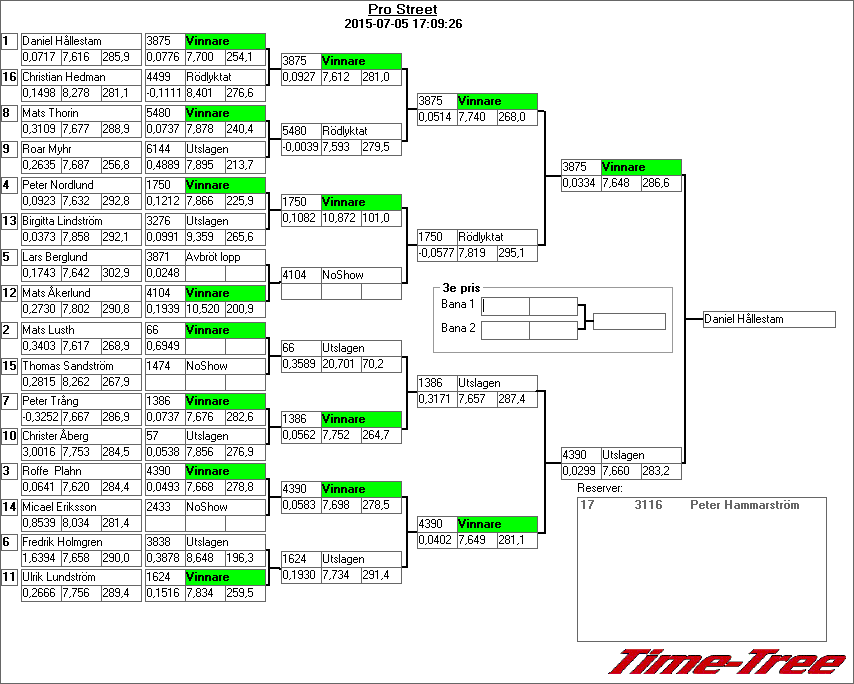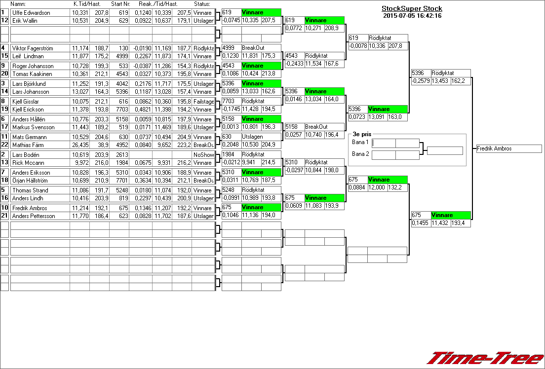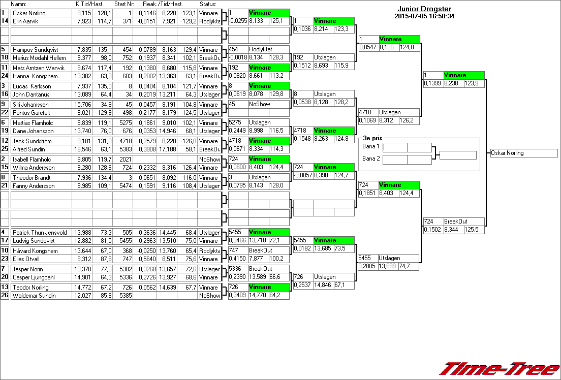 Kvalresultat för Junior Dragster