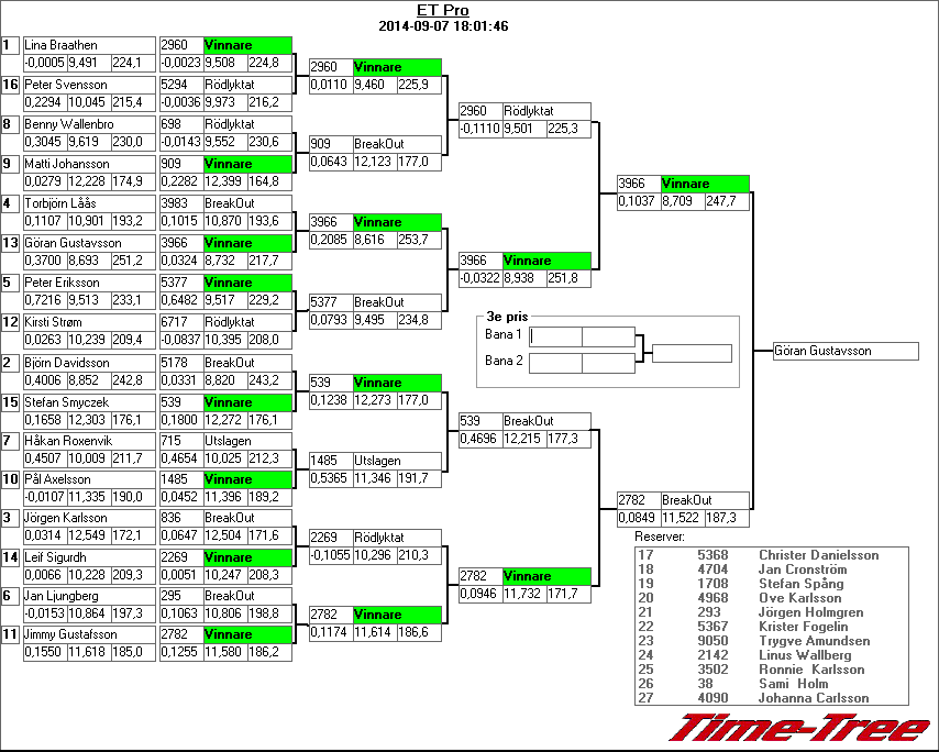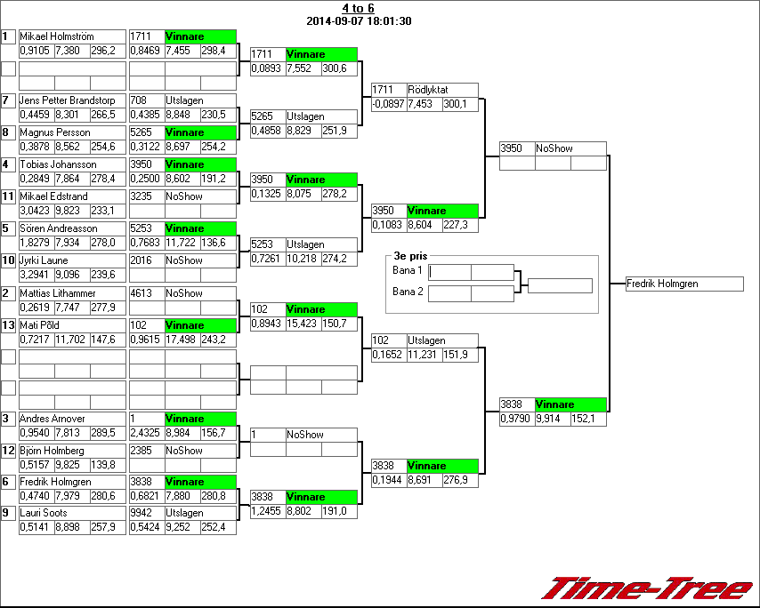 2014-09-06. 14,05 Uppdaterade kvallistor efter första körningen av det fasta blocket