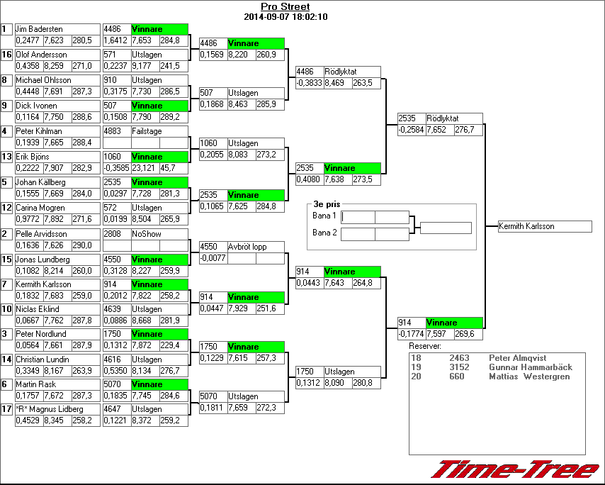 206 tävlande har kört och producerat 1008 tidkort. 2014-09-06. 10.45. Välkommen till Kjula Dragway! Uppdaterade kvallistor.