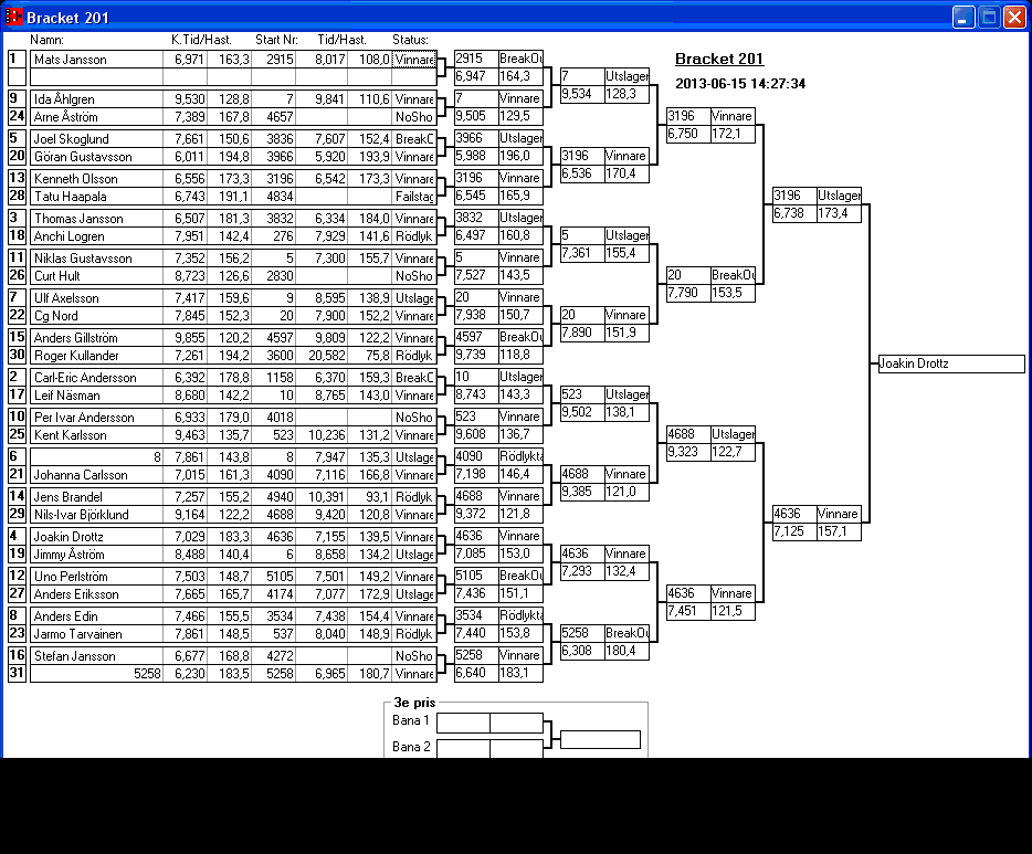 Kvalresultat för Bracket 201