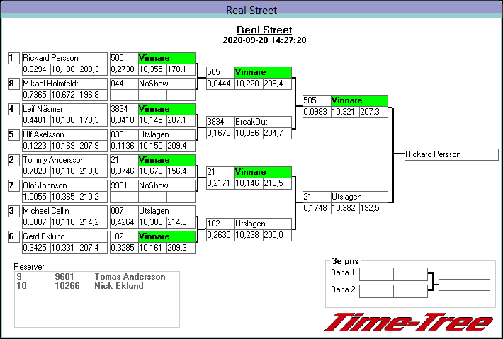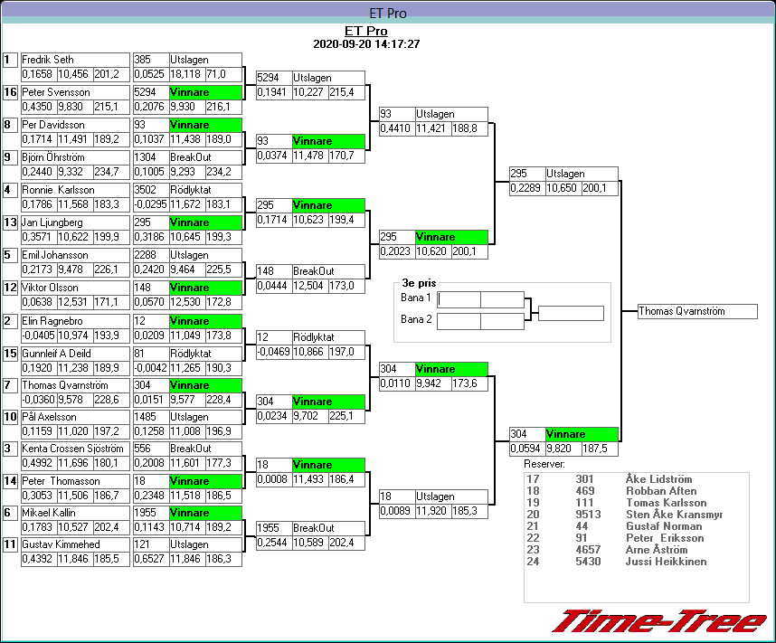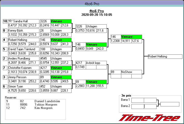Pos TvlNR Namn Reaktion 60-fot Hast201 Tid201 Hastighet Sluttid Diff