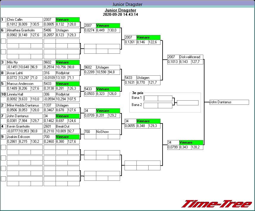 Kvalresultat för Junior Dragster