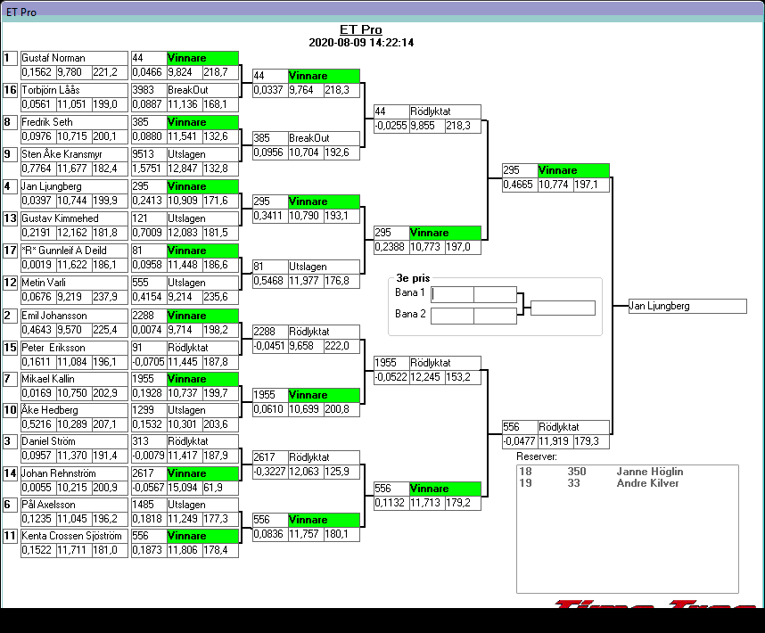 Pos TvlNR Namn Reaktion 60-fot Hast201 Tid201 Hastighet Sluttid Diff