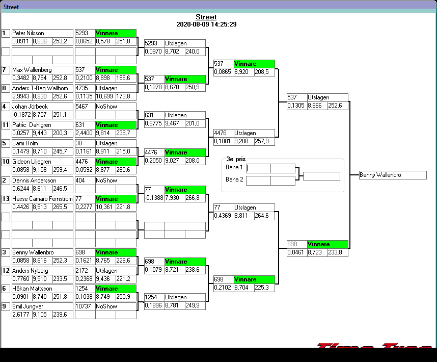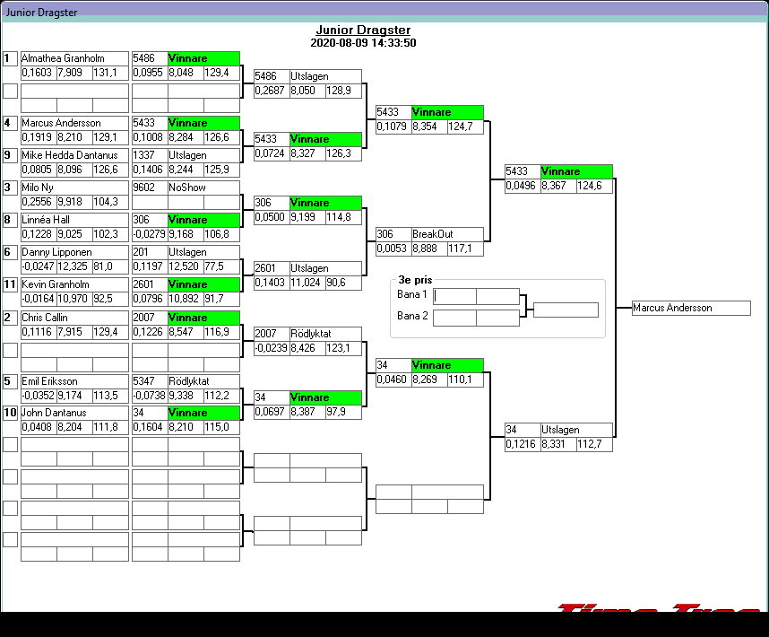Kvalresultat för Junior Dragster