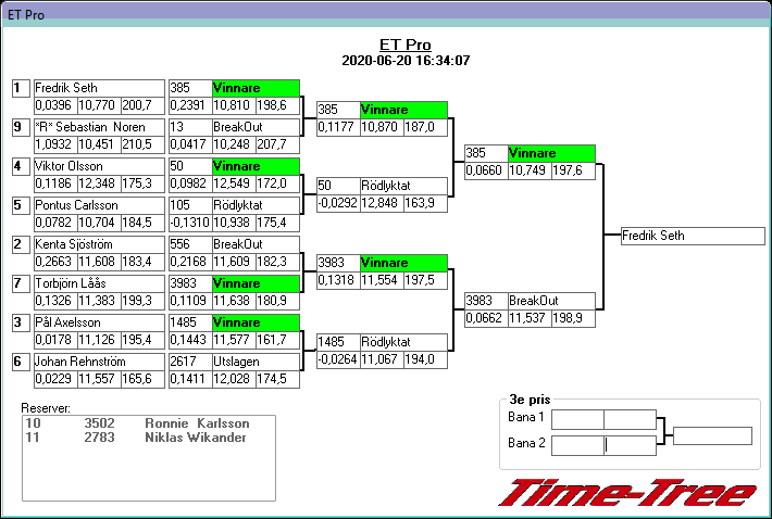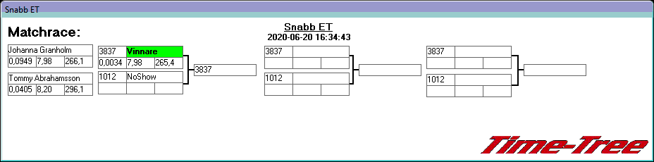 Pos TvlNR Namn Reaktion 60-fot Hast201 Tid201 Hastighet Sluttid Diff