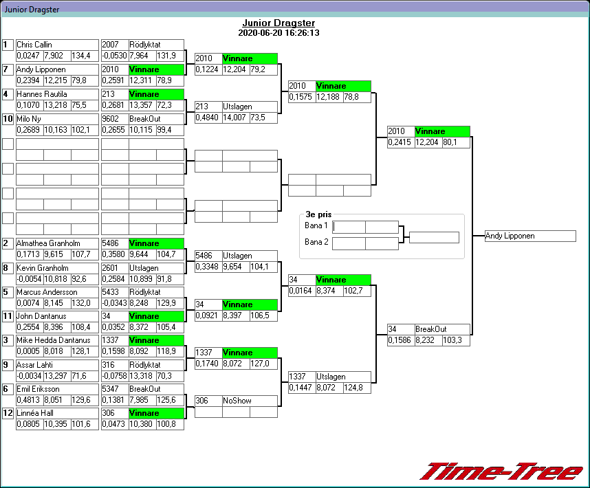 Kvalresultat för Junior Dragster