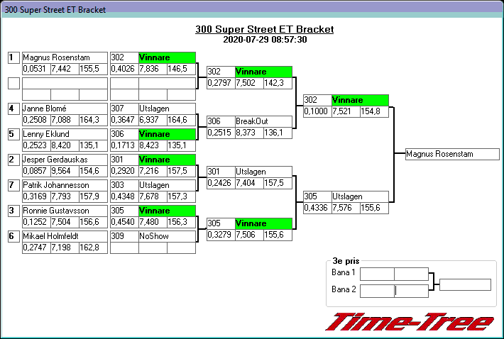 Kvalresultat för 300 Super Street ET Bracket
