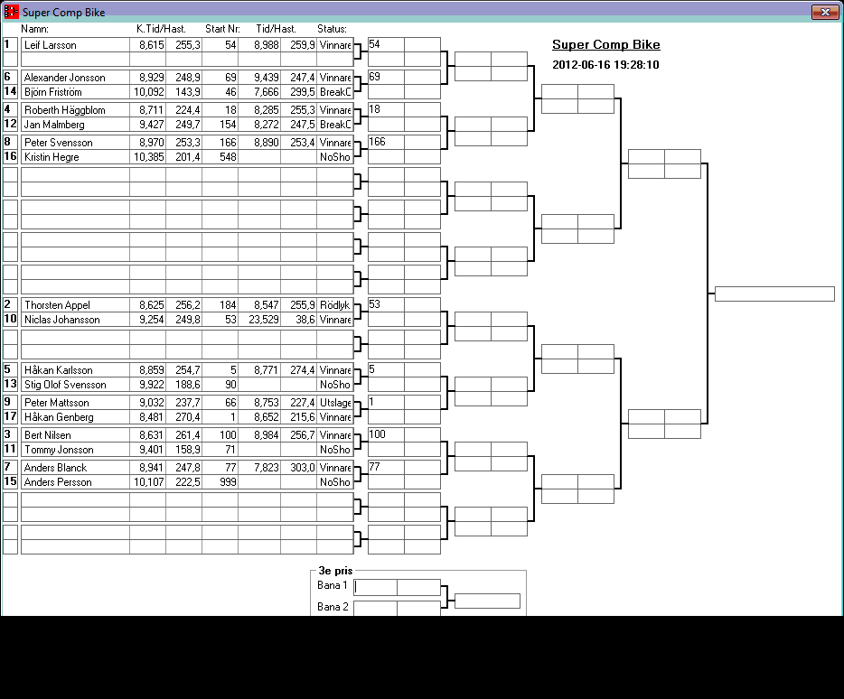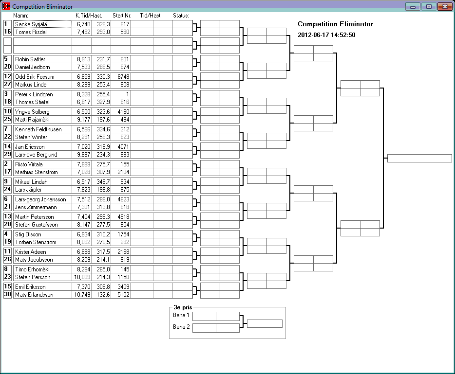 Kvalresultat för Competition Eliminator