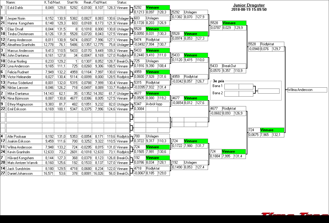 Kvalresultat för Junior Dragster