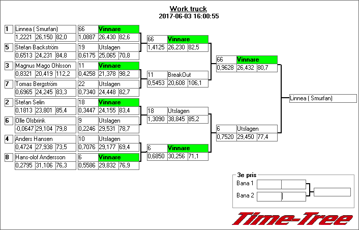 21 tävlande har kört och producerat 255 tidkort 2017-06-03 16:26:54 Time-Tree v6.0.45