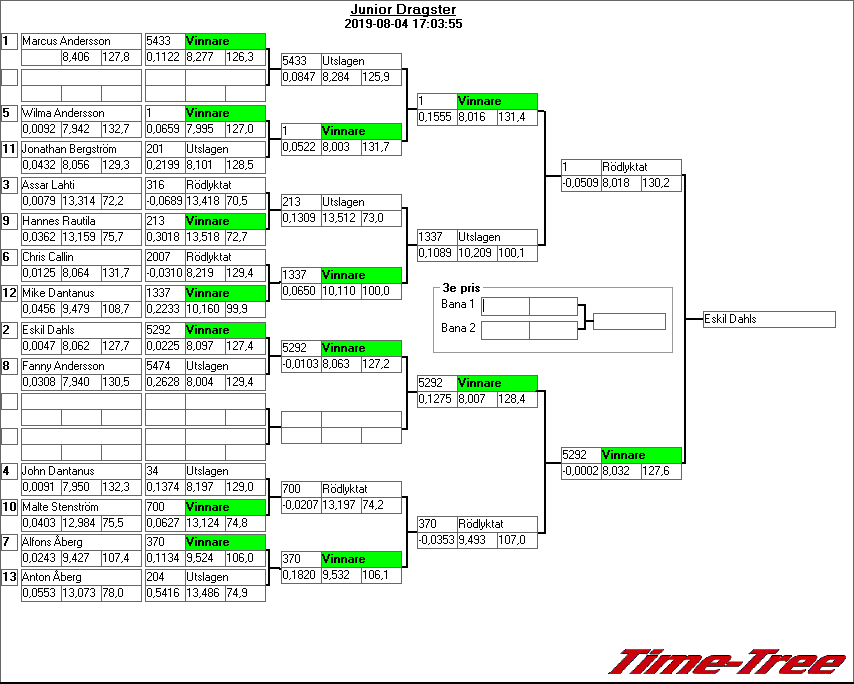 Pos TvlNR Namn Reaktion 60-fot Hast201 Tid201 Hastighet Sluttid Indexdiff Kvaldiff Index