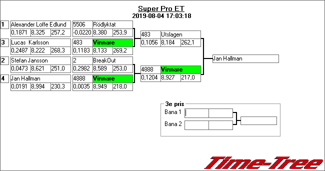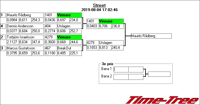 Pos TvlNR Namn Reaktion 60-fot Hast201 Tid201 Hastighet Sluttid Diff