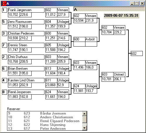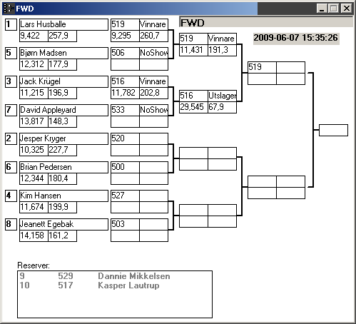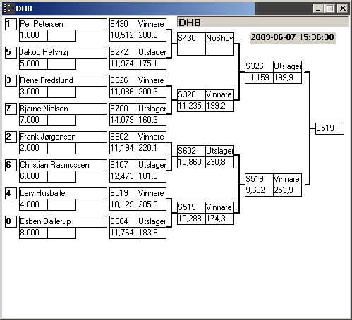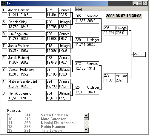 14.00 - Racet är i full gång, vi kör till 20.00 idag fredag. På lördag startar racet kl 08.00 och pågår till 18.00 Söndag startar vi 08.00 och finalerna är beräknade till kl 12.00