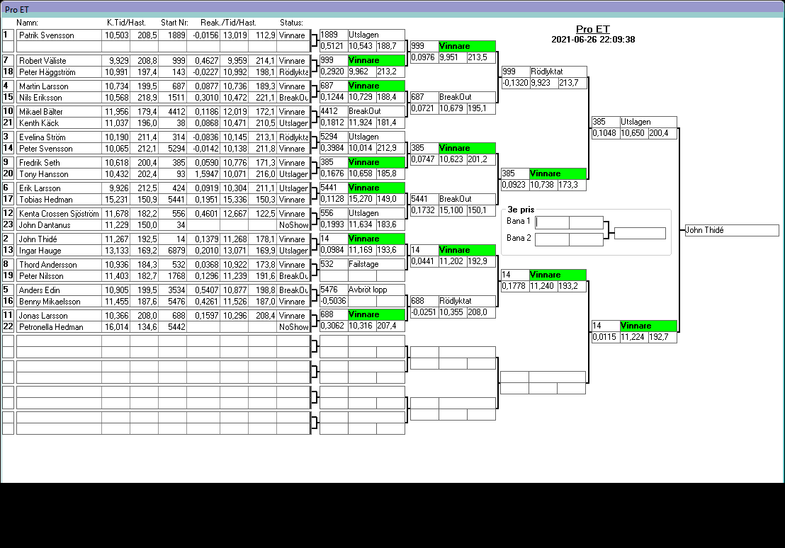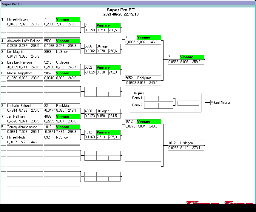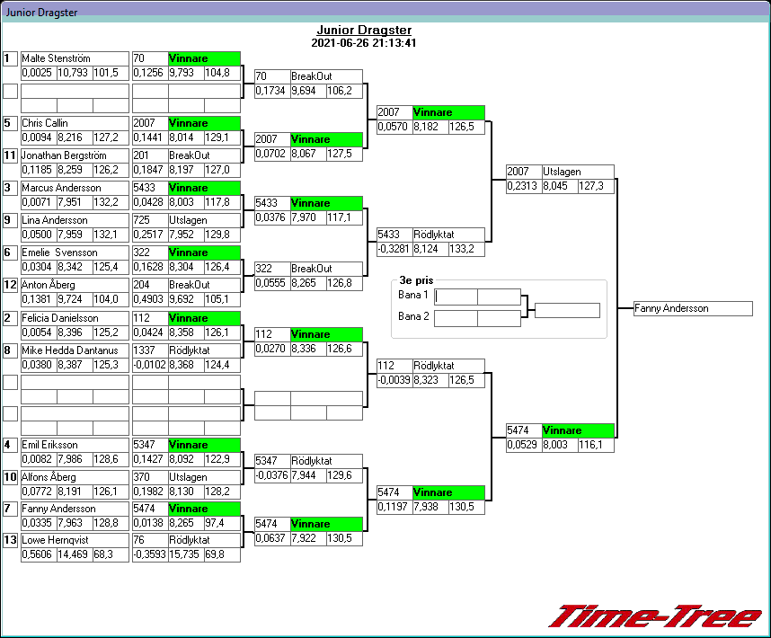 Kvalresultat för Junior Dragster